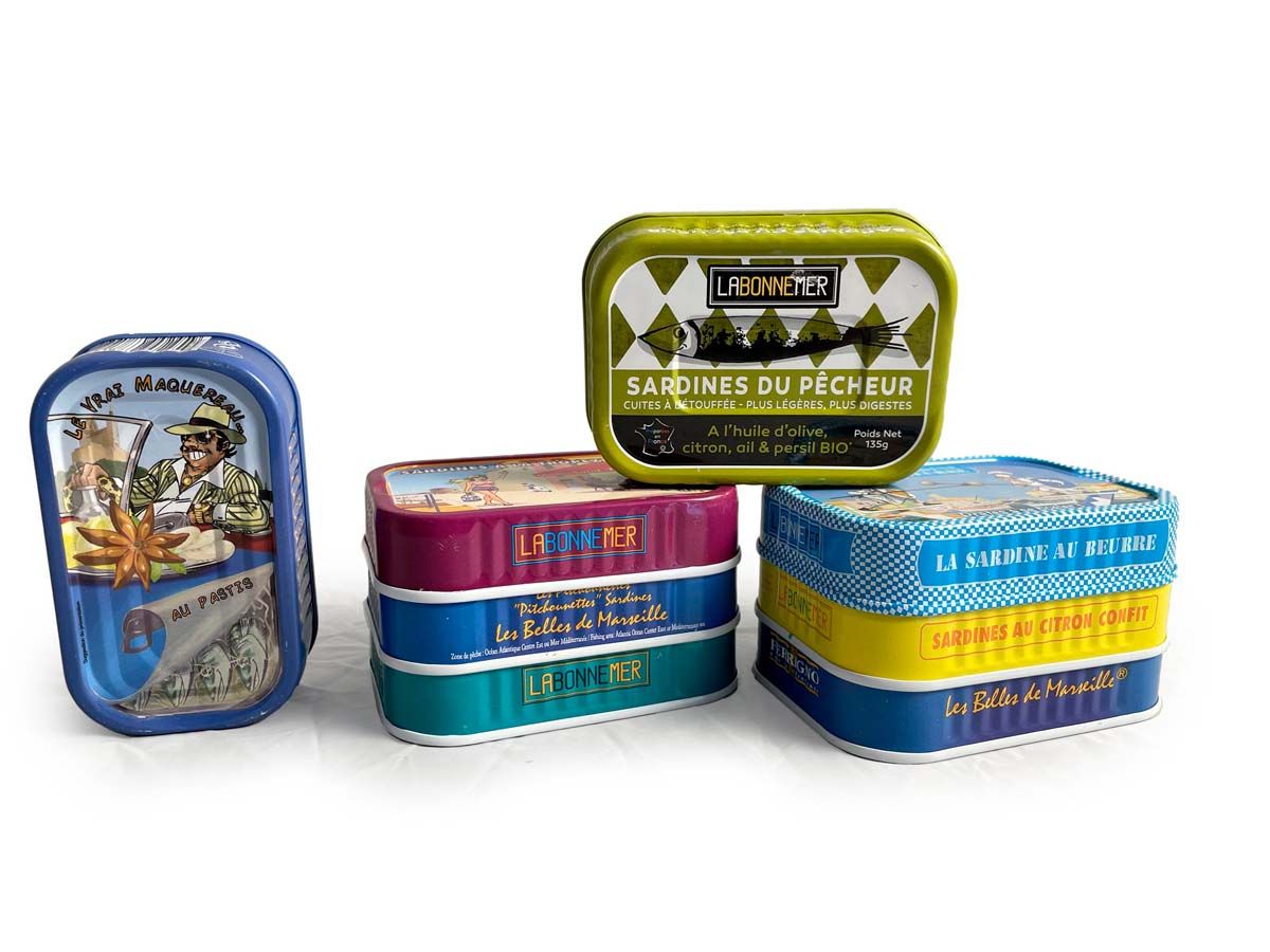 De belles boites de sardines aux accents méditerranéens pour transporter vos apéros au bord de la mer.